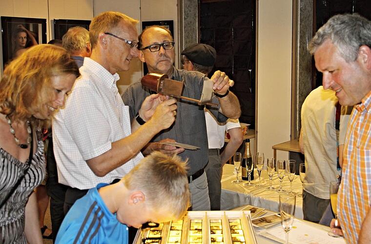 Vernissage Bei der offiziellen Vernissage am Samstagabend konnte der Vorsitzende die zahlreichen Besucher mit seiner Diaschau "Eberner Heimatbilder" in die letzten fünf Jahrzehnte entführen. Zuvor aber hieß Schanz die Besucher in der neuen Galerie im alten Modehaus "Xaver-Mayr" in Ebern willkommen.