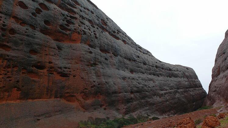 Scheinbar unendliche Klippen Der grandiose Kings-Canyon braucht den Vergleich mit dem amerikanischen Grand Canyon nicht zu scheuen. Und der abgeschiedene, aber gigantische Monolith Uluru, auch als Ayers Rock bekannt, ist einfach umwerfend. Von weitem sieht es so aus, als liege ein riesiger Steinblock in der Landschaft herum. Die wahren Dimensionen erkannte Manfred Wagner erst, als er unmittelbar davor stand: Steile Felsklippen, die fast senkrecht scheinbar unendlich in den Himmel ragen. "Der Mensch wirkt da ganz klein und verloren wie eine Ameise." Da es an diesem Vormittag regnete, konnte der staunende Königsberger zahlreiche Wasserfälle beobachten, die an dem Steinriesen herunter sausten.