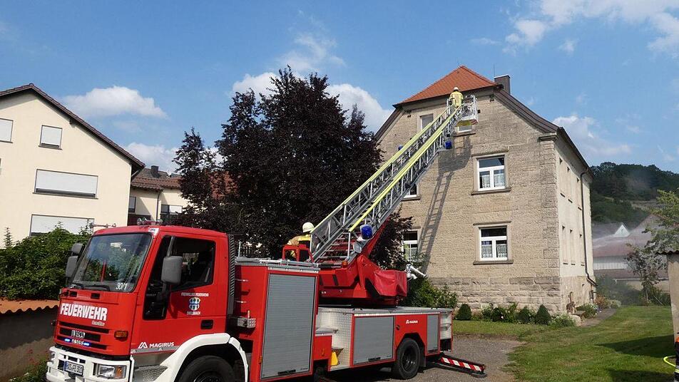 Beim Gemeindefeuerwehrtag Ebelsbach fand auch eine Großübung mit insgesamt rund 50 Feuerwehrmännern und -frauen statt.