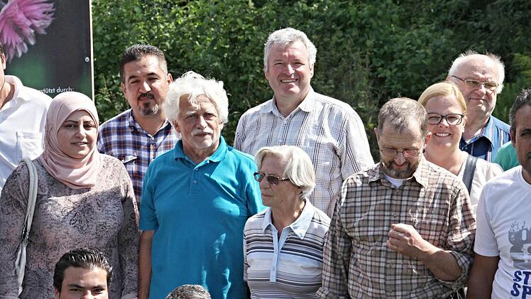 Bürgermeister Jürgen Hennemann ging noch darauf ein, dass man bewusst eine Akelei auf der Tafel gewählt habe. Das reich verzweigte Wurzelsystem dieser Pflanze mit beständigem Wachstum symbolisiere die Verbindung der Flüchtlinge mit der Bevölkerung von Ebern ganz gut, meinte er. Ein Rundgang durch den Garten, bei dem die Eberner Teilnehmer mit den Flüchtlingen ins Gespräch kamen, schloss sich an.