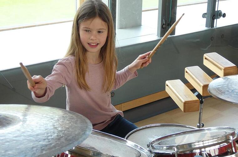 Besonders vom Schlagzeug fasziniert war Lorena Diehm. Bei der Siebenjährigen aus Zeil lagen die Drumsticks schon wie bei einem Profi in der Hand, als sie vor dem Drumset saß.