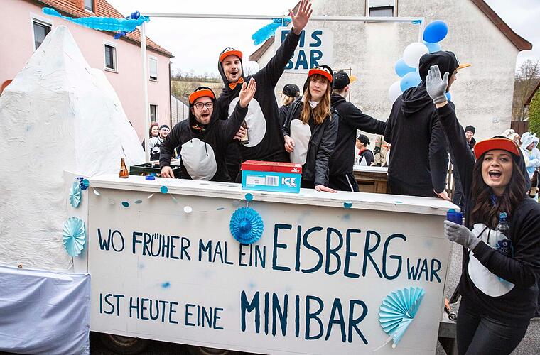 "Wo früher mal ein Eisberg war, ist heute eine Minibar." Die Diskussion um Klimawandel und den Klimaschutz nutzten nicht nur die "Schiffschaukelbremskeilschnitzer" aus Oberaurach als Thema beim bunten Faschingszug am Sonntag durch Trossenfurt und Tretzendorf. Auch die "Klimateufel" aus Priesendorf gingen weit über die Grenze hinaus und überlegten: "Ohne Klimaschutz sind wir verloren und müssen schon jetzt in der Hölle schmoren."