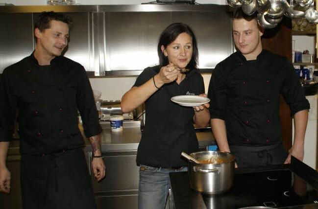 Die Stammgäste als "Probe-Esser" So ist die "Wallburg" nicht nur am Wochenende beliebtes Speiselokal, auch an den Werktagen herrscht laut Sandra Aumüller reger Betrieb. "Die Frauen gehen heute öfter aus als früher", stellt Gaby Aumüller fest. "Bei der Sandra" treffen sich die Damen vom Frauenchor, die "Wellness-Schnecken" und der Wanderverein "Hüm und drüm vom Maa". Die müssen dann auch mal als "Probe-Esser" herhalten, wenn Markus Aumüller und sein Team in der Küche mit Nadja, Anka und Patrick etwas Neues ausprobieren.