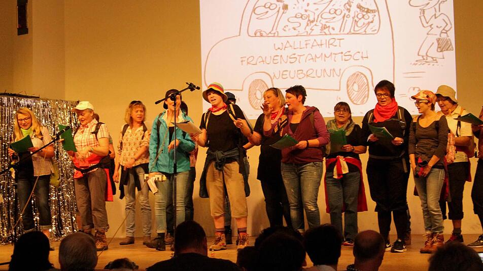 Die Mischung macht's! Ein buntes und abwechslungsreiches Programm sorgte für beste Stimmung im Saal. Dafür garantierte der "Frauenstammtisch" mit seinem Gewaaf über eine Wallfahrt, das immer wieder mit Schlagern und "Ohrwürmern" durchsetzt war. Unter anderem ging es um den abgezogenen Geldautomaten. "Die Nachricht traf uns schwer, wu kriech mer Geld jetzt her? Der Automat kummt fort an einen fernen Ort.