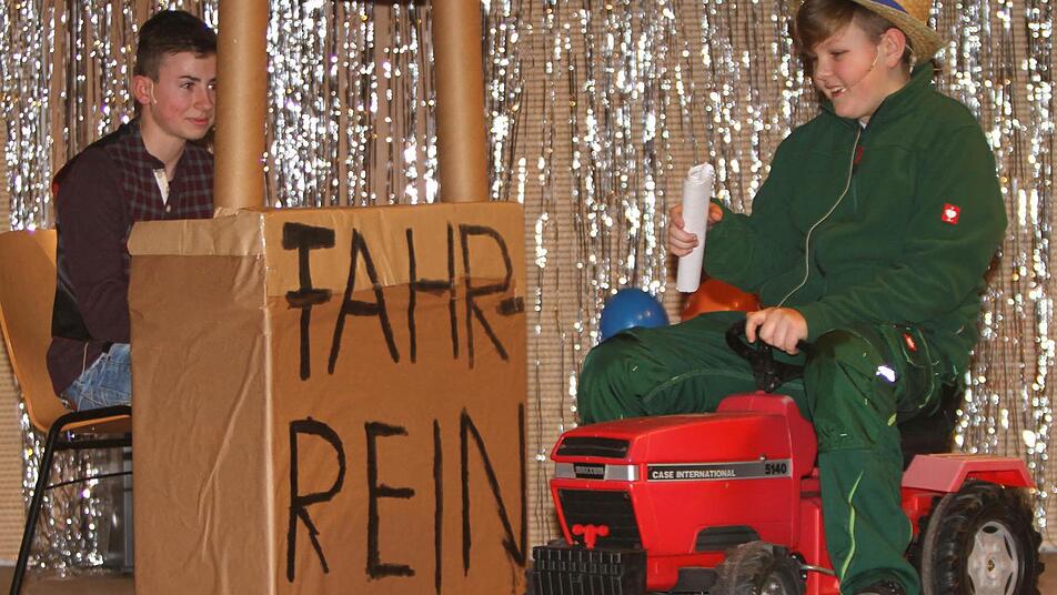 Mit dem Tanz der "Neubrunner Garde" erfolgte der Auftakt und gleich rissen die beiden Nachwuchskünstler Emil Rödel und Kalle Derra mit ihrer Büttenrede als "Engelchen und Teufelchen" den Saal zu Beifallsstürmen hin. Sie berichteten von einer Busfahrt des "Freizeitchores" nach Altötting, bei der sich allerhand ereignet hatte. "Ja angespannt die Lage war, ein Sekt reicht nicht, so viel war klar. Frau Mantel und Frau Zipper schick ich los ganz wendig - mit klarem Wasser hochprozentig."