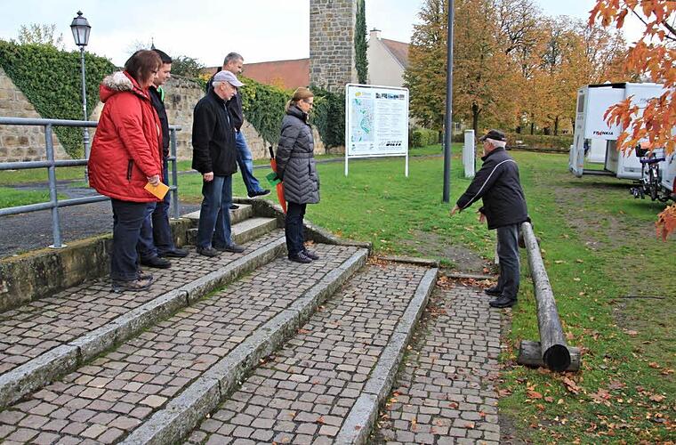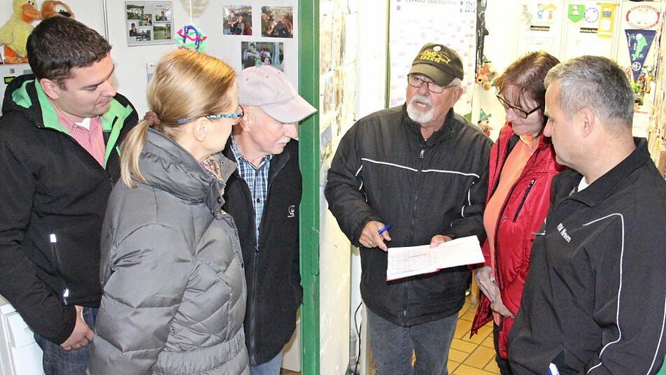 Die Tourismus- und Werbegemeinschaft Ebern schaute sich am Samstag auf dem Wohnmobilstellplatz um. Dass neue Sanitäranlagen sinnvoll wären, sahen alle ein. Entschieden wird darüber aber letztlich im Stadtrat.