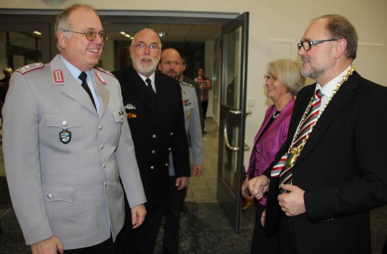 Vor 50 Jahren in Kompaniestärke Die Premiere im einstigen Mannschaftsspeise-Saal, wo in Glanzzeiten fast 1500 Soldaten zweier Bataillone verpflegt wurden, nutzte Bürgermeister Herrmann auch zu einem Rückblick, da just am 7.Januar 1963, also vor 50 Jahren, das Jägerbataillon 101 (später Panzergrenadierbataillon 103) in kompletter Stärke seinen Dienst aufnahm. "Wir werden die über 40-jährige Gesichte als Garnisonsstadt nie vergessen." Doch die Zeiten hätten sich gewandelt. Es entstand der "Gewerbepark Alte Kaserne", Auch wenn der Begriff "alt" negativ besetzt sei, habe sich doch viel Neues entwickelt und sich mittlerweile 20 Unternehmen angesiedelt.