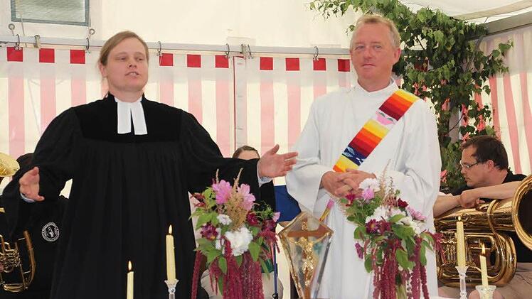 "Mit vereinten Kräften" Herausgeputzt erwartete das neue Feuerwehrfahrzeug, ein MAN, mit dem Kennzeichen HAS - GE 112 und dem Funkrufnamen "Florian 47/1" die Besucher des Feuerwehrtages in Gereuth. Pfarrerin Sonja von Aschen und Diakon Bernhard Gartner gestalteten einen lebendigen Gottesdienst, der von den "schauspielerischen Qualitäten" der beiden Geistlichen lebte und vom Posaunenchor Untermerzbach musikalisch begleitet wurde.