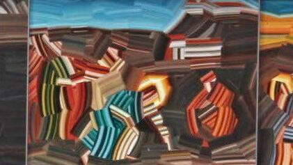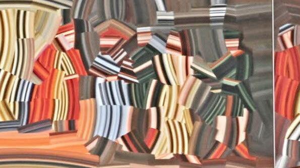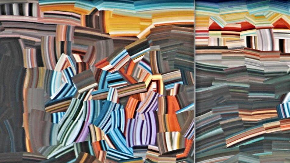Jeder einzelne Pinselstrich enthalte ein Spektrum an Farbverläufen und Schattierungen. Dadurch werde die Bildfläche in Portionen zerlegt, die sich erst in der Überlagerung wieder zu einem Motiv vereinen.
