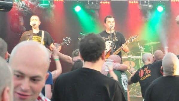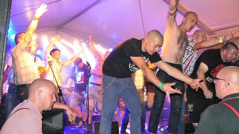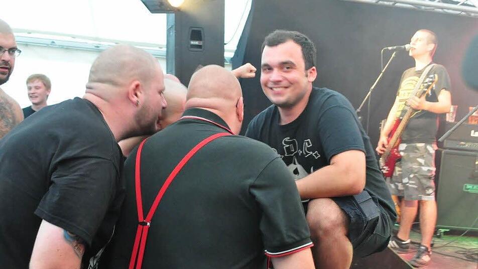 "Love music, hate fascism" (Liebe die Musik, hasse den Faschismus) stand auf dem Transparent über dem Eingang zum Festzelt des Frankenpogo in Altenstein (Marktgemeinde Maroldsweisach). Und damit ist auch die Richtung der Skins vorgegeben. Zum vierten Mal hatten die lokalen Bands "Hartes Pflaster" und "Schlagabtausch" dazu eingeladen.