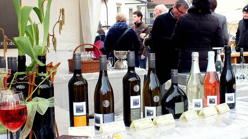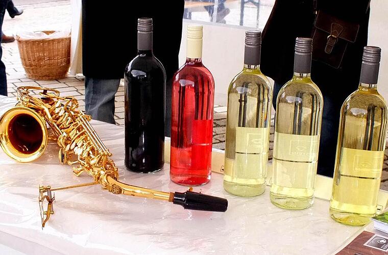 Zum Sander Wein schmeckte natürlich der "Original Sander Käsekuchen". Hoch im Kurs standen auch Blumenschmuck, Deko-Artikel, Liköre und Produkte aus Alpaka-Wolle. Zwei lebende Alpakas machten dafür Werbung.