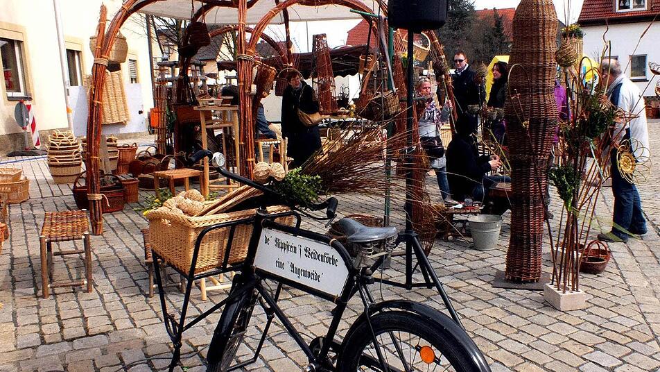 Die Korbhändler präsentierten vom Einkaufskorb über Futter- und Kaminholzkörbe bis zum Baby- und Wäschekorb alles, was Korbmacher-Flechtkunst herstellen kann.