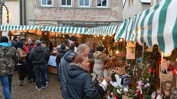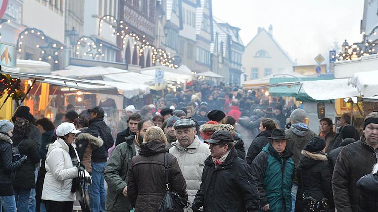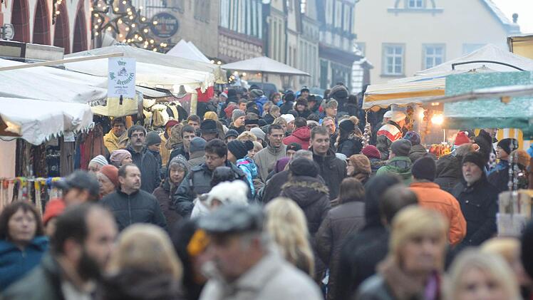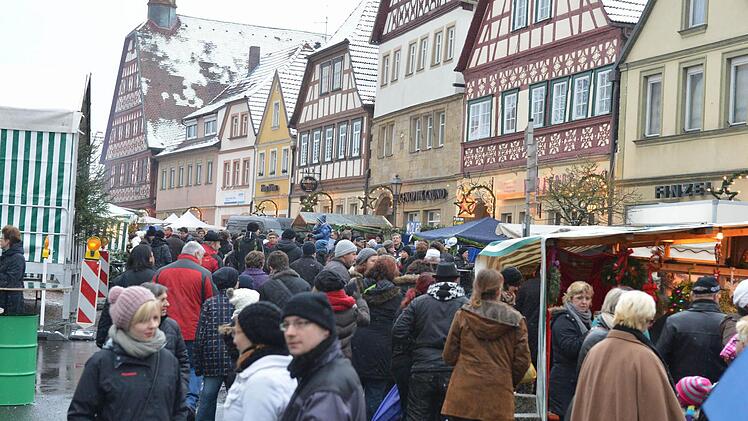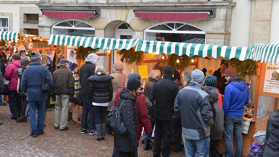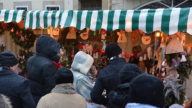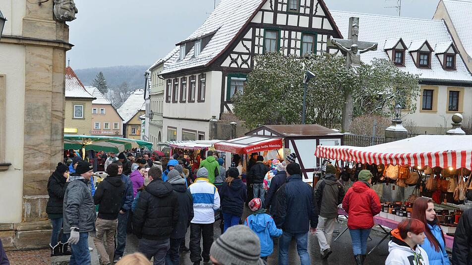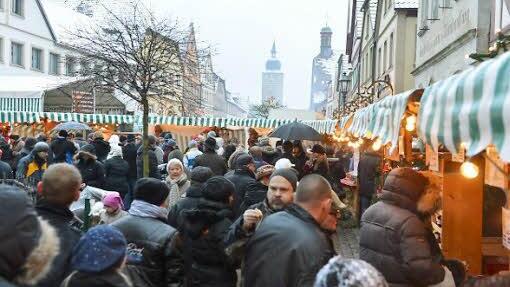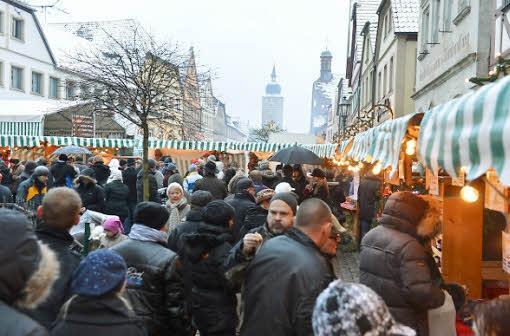 Die interessierten den Kleinen zwar so gar nicht, aber Geduld brachte er dennoch auf. Ein "paar schöne Stunden bei winterlichen Adventswetter" wünschte Bürgermeister Robert Herrmann allen Besuchern. Dabei hatte sich Max schon am Morgen über den Schnee gefreut, der über Nacht gefallen war. Christina Seebach-Künzel tat als Sprecherin der Tourismus- und Werbegemeinschaft gar so,als hätte sie das Timing arrangiert. Schneefall zum ersten Advent, perfekt für einen der größten Weihnachtsmärkte in der Region, an dem sich alle Geschäftsleute größte Mühe geben würden.