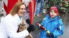 Nikolaus Oliver Zinger (34) indes hat dafür keine Augen. Zu sehr ist er mit dem Verteilen seiner Geschenke beschäftigt. "Die Kinder sind alle sehr brav", hat er festgestellt, auch wenn einige doch Respekt vor dem Mann mit dem weißen Bart haben. "Einen Wunschzettel, den ich ans Christkind weiterreichen soll, habe bekommen",zog der Nikolaus Bilanz, dem seine Premiere in der Bischofskutte "echt viel Spaß gemacht hat". Auch weil so viel Mütter nach Geschenken trachteten.