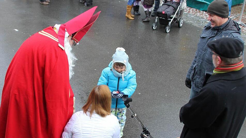 Der kleine Max konnte es kaum erwarten. Neugierig lugte er in den Sack vom Nikolaus. "Was hast Du denn da drin?" Doch Oliver Zinger aus Mürsbach, der sich das Gewand und den Bart umgehängt hatte, gab sich zunächst zugeknöpft. Max musste ebenso wie die anderen Kinder erst warten, bis der Bürgermeister seine Ansprache gehalten hatte.