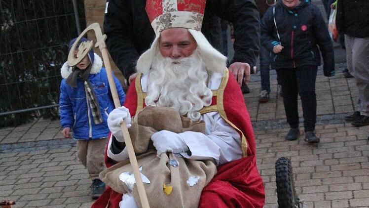 Das Christkind (Desiree Büschel) wurde von den Kindern mit Spannung erwartet. Das Christkind hatte einige Reime zum "Marokaner Weihnachtsmarkt" dabei. "Mein Weihnachtsmarkt bleibt immer jung und, solange es Maro gibt, in Erinnerung." Plötzlich richteten sich alle Augen hin zur Herrenstraße, wo Glockenklang zu hören war. Durch den Torbogen zum Weihnachtsmarkt kamen Schlittenhunde, die im Schlepptau den Nikolaus (Ralf Hartmann) auf den Hundeschlitten zogen, der von Siegfried Hartung gesteuert wurde. Der Nikolaus wurde ebenso wie das Christkind umlagert, gab es doch von beiden Leckereien für die Kinder.
