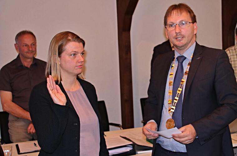 Bürgermeister Thein vereidigte sodann die "Nachrückerin" Ramona Schrapel (FW) aus Geroldswind. Das Gremium beschloss, dass sie im Finanz- und Forstausschuss sowie im Rechnungsprüfungsausschuss arbeitet.