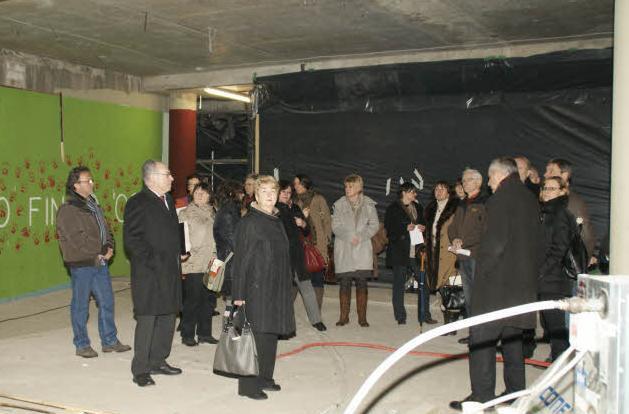 Derzeit wird, wie die Verbandsräte sahen, im Gebäudeteil Ost saniert. Holzwände trennen die benutzten Schulräume von der Baustelle. Dahinter erkennt man zwar noch die sichtgeschalten Betonwände, doch von den ehemaligen Klassenzimmern ist nur noch der Grundriss übrig.