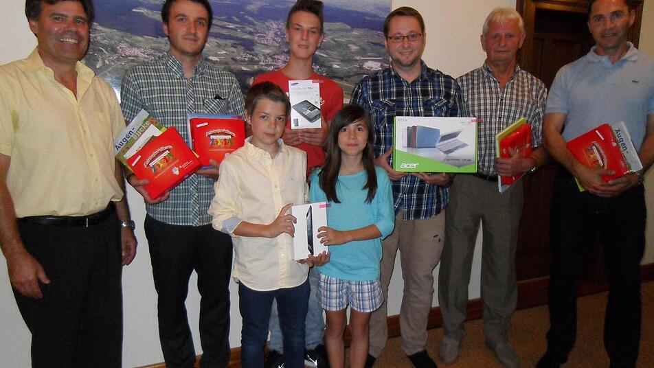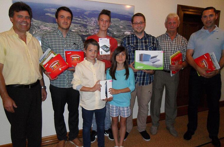 Attraktive Preise für die Erstplatzierten Elias und Ann-Sophie dürfen sich jetzt ein i-Pad teilen, das sie als ersten Preis in Empfang nahmen.