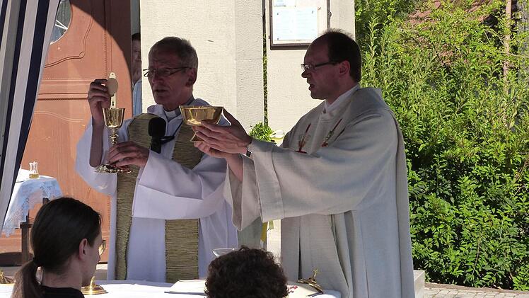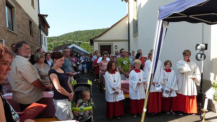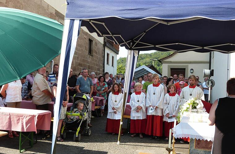 Obersteinbach — Das 100-jährige Bestehen als Kirchengemeinde konnten die Obersteinbacher am vergangenen Samstag im Rahmen eines Festgottesdienstes feiern. Das Hochamt, das bei dem warmen Sommerwetter im Freien stattfand, wurde von Pfarrer Kurt Wolf und Jürgen Lenssen aus Würzburg in Konzelebration gefeiert.