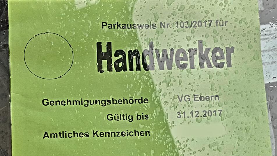Ebern das Privileg, an Stellen, wo Halten oder Parken für "normale Verkehrsteilnehmer" verboten oder befristet ist, zur Erledigung ihrer Arbeit ihre Fahrzeugen länger zu stehen. Zu diesem Zweck hat die Stadt gegen eine entsprechende Gebühr entsprechende Parkausweise erteilt.