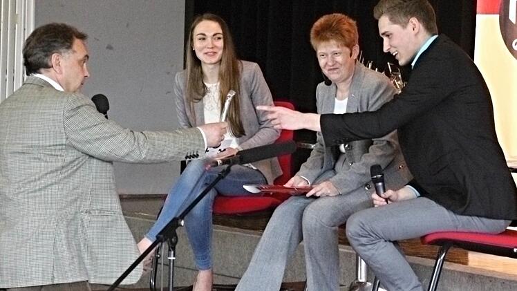 Sophia Reinmund und Simon Schleicher, Schüler des FRG, zeigten sich als kompetente und sympathische Moderatoren, die nicht nur vorgefertigte Fragen an die Politikerin richteten, sondern auch spontan auf verschiedene Ausführungen des Gastes aus Berlin reagierten. So wurde das Ganze nicht zu einem Frage-und-Antwort-Spiel, sondern zu einem lebhaften und informativen Gespräch.