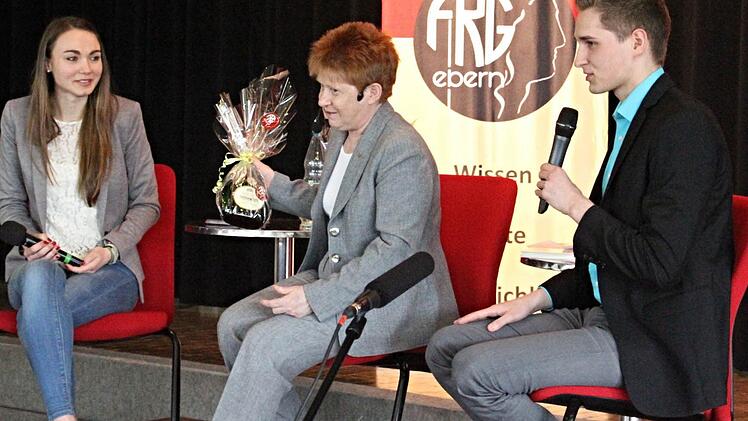 Zweck der Veranstaltung solle sein, den Schülern Politik hautnah vor Augen zu führen. Der Schulleiter freute sich über die spontane Zusage, der Vizepräsidentin, die ihr Amt überparteilich führe, nach Ebern zu kommen. "Vielleicht kommen Sie ja auch mal, um bei uns in den Haßbergen Urlaub zu machen", sagte Schmidt. Er erfuhr dann allerdings etwas später, dass Petra Pau, danach gefragt, was für sie Glück bedeute, seit vielen Jahren ihren Urlaub im Allgäu verbringt. "Ich habe mich in die Gegend und die Menschen verliebt", gestand die Spitzenpolitikerin.