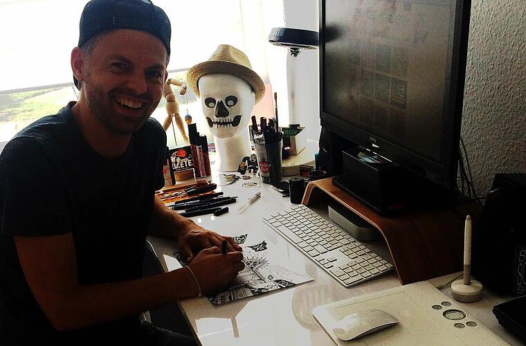 Breitbrunn - Arbeiten für die Band, unter deren Poster man als Jugendlicher selbst jeden Abend einschlief. Ein Traum vieler. Christian Bögle (37) aus Coburg hat das geschafft. Angefangen hat der Illustrator als Teenager mit Cartoons, mittlerweile designt er für die ganz großen Namen der deutschen und amerikanischen Musikszene: T-Shirt-Motive, Plattencover und Plakate. Die irisch-amerikanische Folk-Punk-Rock-Band Flogging Molly, The Gaslight Anthem aus Amerika und Bring Me The Horizon, die mehrere Millionen Platten verkauft haben, waren unter anderem schon seine Kunden.