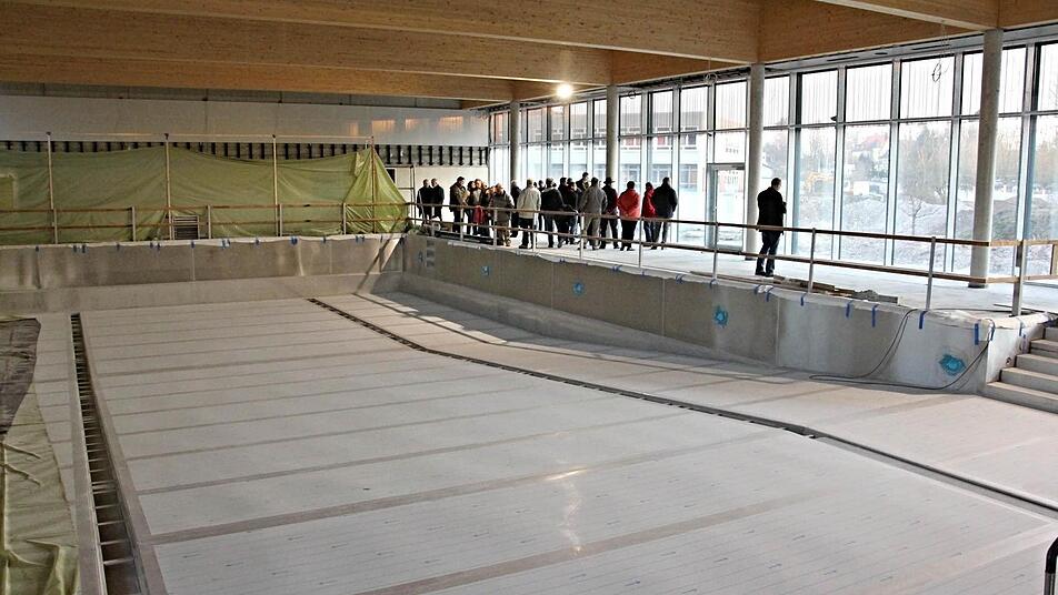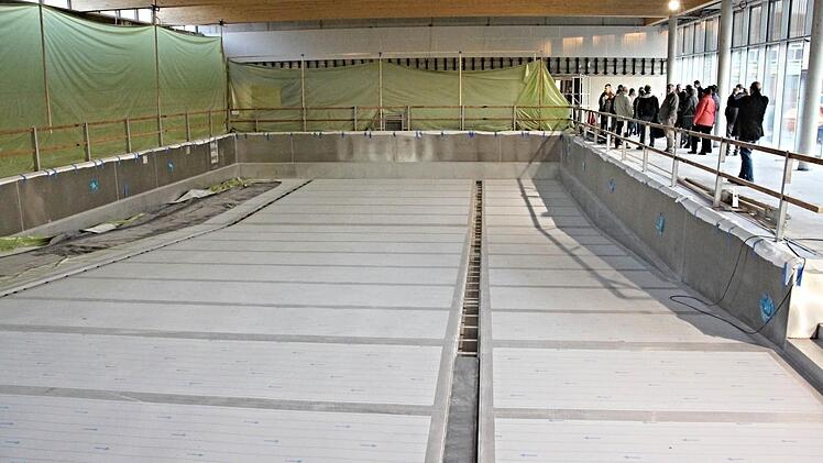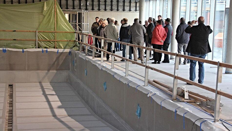 Bei der Führung durch das neue Hallenbad erläuterte der Kreiskämmerer, dass bisher über fünf Millionen Euro verbaut wurden. Einiges sei noch zu tun. Die Gesamtsumme wäre mit sieben Millionen veranschlagt. Das Bad werde laut den Planungen gut belegt sein, sagte Bürgermeister Jürgen Hennemann. Ralf Röckelein vom Hochbauamt des Landratsamtes erläuterte dem Gremium die Wasser- und Heizungstechnik des Bades. Im Obergeschoss sorge ein Blockheizkraftwerk für Strom und Wärme, an das auch die Realschule mit angebunden werde.