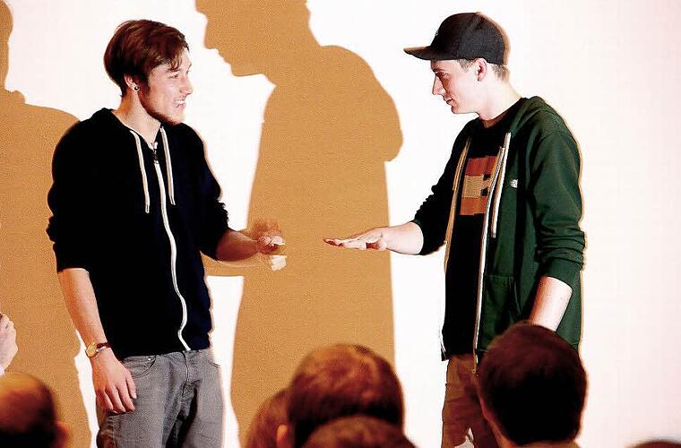 Mutter-Tochter-Abend Es gibt nichts, was nicht verstanden wird. Selbst bei einem Text ohne das wichtige, aber so häufig verwendete "e" sind die Zuhörer spendabel mit Applaus. "Das Schöne war, dass heute auch mal ältere Leute vorne standen", sagt Dagmar Schnös. Sie ist 47 Jahre und hat eine 16-jährige Tochter, Paulina. Auch sie ist beim ersten Poetry-Slam hier dabei. Abende wie diese erleben Mutter und Tochter gemeinsam. "Das ist jetzt schon unser dritter gemeinsamer Slam", sagt Paulina. Einigen Haßberglern ist die moderne Slammerei schon lange ein Begriff. Und die, die nicht wussten, was auf sie zukommt, "das sind so ungefähr 57 Prozent", überschlägt Ritter blitzgeschwind bei seiner Einmal-die-Hand-heben-Abfrage, lassen sich von dem "richtigen coolen" Programm mitnehmen.