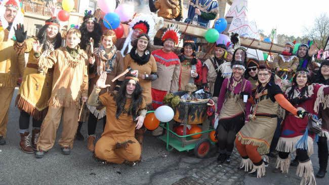 Angeführt wurde der Zug von den beiden Prinzenpaaren, die in Cabriolets chauffiert wurden, und den Garden. In Gemeinfeld dürfte keiner mehr daheim gewesen sein, soviel Indianer waren beim "Zeltlager" dabei.