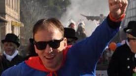 Viele Fußgruppen waren unterwegs, wie der Raupen-Express der Krabbelgruppe, Museumsleiter Heinz Braunreuther mit einer Attrappe des "King" Elvis Presley - der im Januar 80 geworden wäre - und Elvis-Imitator Waldi Butterhof, ferner eine Truppe "Super-Men" oder die Gruppee des TSV Burgpreppach als Schlotfeger.
