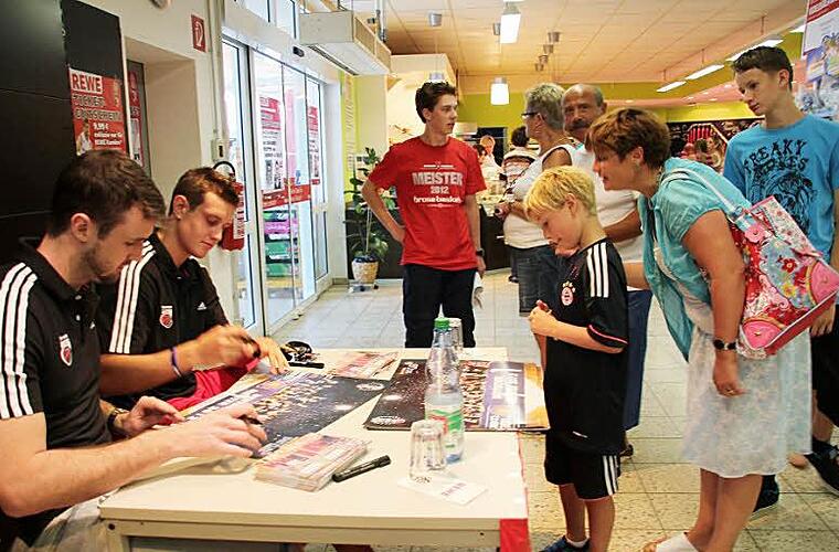 Ihre Autogrammstunde war die erste, die Akteure des neu formierten Teams des Abomeisters in der Basketball-Bundesliga für einen der Hauptsponsoren absolvierten. Marktleiterin Andrea Schrempf freute sich darüber.
