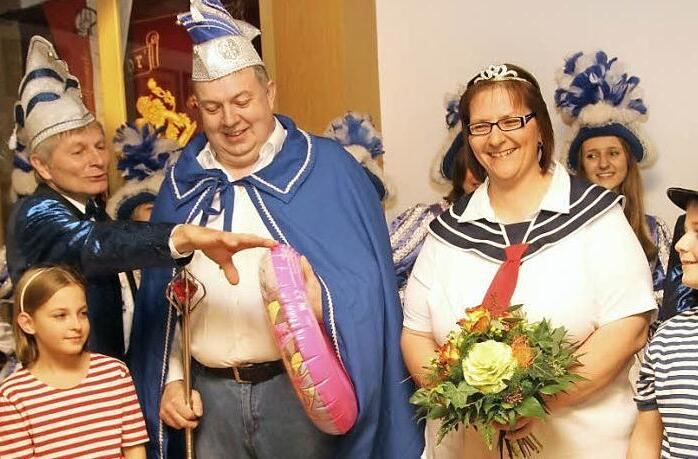 Natürlich hielt der Präsident auch bei diesem Faschingsauftakt das Zepter in der Hand, zumindest im übertragenen Sinn. Denn mit diesem Zeichen der macht kamen auch bisherige Prinzenpaar Lena I. und Alexander I. noch einmal ins Rampenlicht. Die Narren dankten ihnen mit großem Beifall für die "hervorragende Herrschaft" während der abgelaufenen Saison. Schließlich sei es ja gar nicht so einfach, immer wieder ein Prinzenpaar krönen zu können.