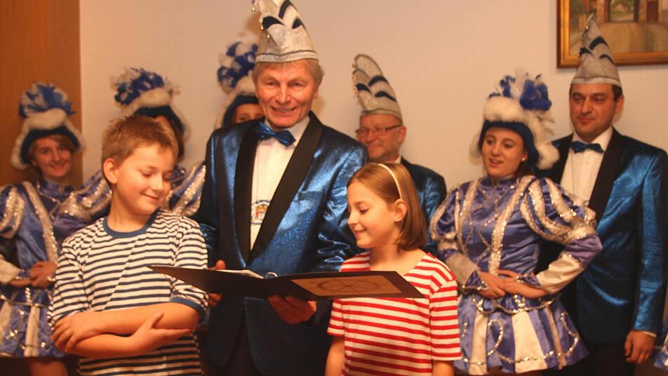Mit Mini-Prinzen genarrt Zur Überraschung präsentierte Sechserrat Ludwig Bock plötzlich ein ganz junges Prinzenpaar, nämlich Prinzessin Ines und Prinz Moritz. Sie waren dazu noch Zwillinge im Alter von 9 Jahren. Mit Stolz sagten sie: "Der Willi will in der Gemeinde eine große Kinderschar. Darum sind wir zwei jetzt euer neues Prinzenpaar - Prinzessin die I. und Prinz Moritz der I."