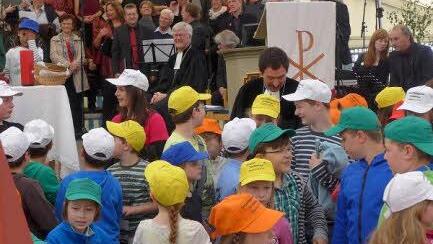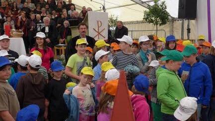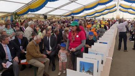 Kindergottesdienst "Nun können die Kinder kommen", sprach Dekan Blechschmidt, als der Programmverlauf an die Stelle gekommen war, die im Kinderprogramm "Festzelt" lautete. Vom Kindergottesdienst in der Kirche kamen sie herbei, brachten die Sonne an diesem anfänglich trüben Sonntagmorgen und viel Fröhlichkeit mit. "Meine Zeit, Deine Zeit, schon sind wir zu Zweit" sangen und tanzten die jüngsten der Gemeinden.