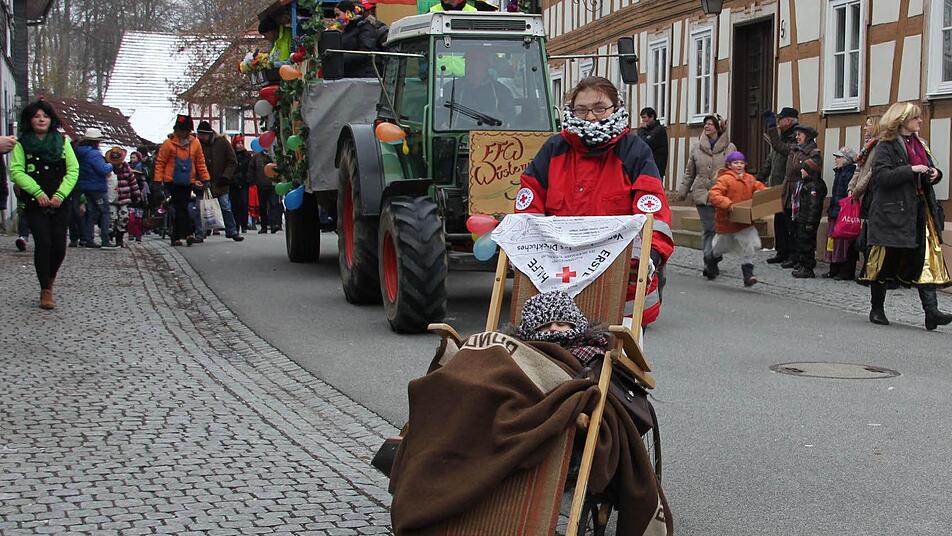 Die Motivwagen stellten erneut die Fußballer, die Jugendfeuerwehr und der Wüstenwelsberger Nachwuchs. Neu hinzu kam die Gereuther Feuerwehr, die ihren Wunsch nach einem neuen Fahrzeug zum Ausdruck brachte.