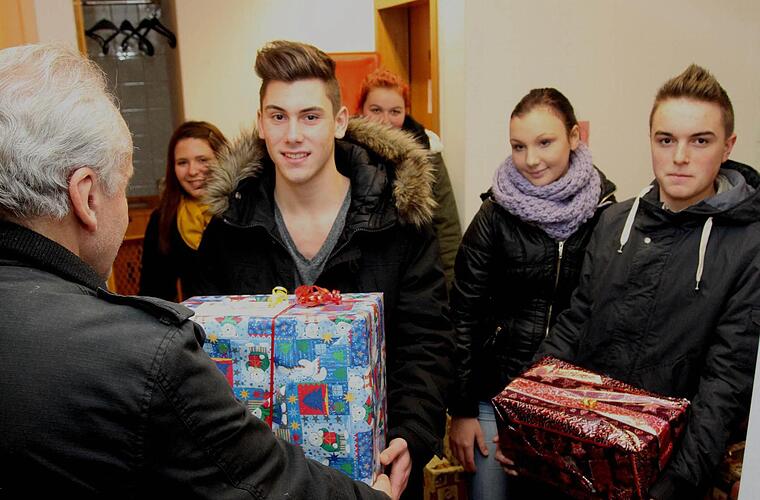 Die Lehrer und Schüler übergaben die 73 Pakete im Sozialladen. Leiterin Marianne Wolfschmitt dankte und lobte die "tolle Aktion der Schüler".