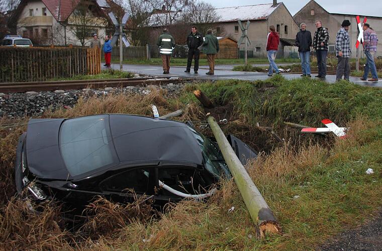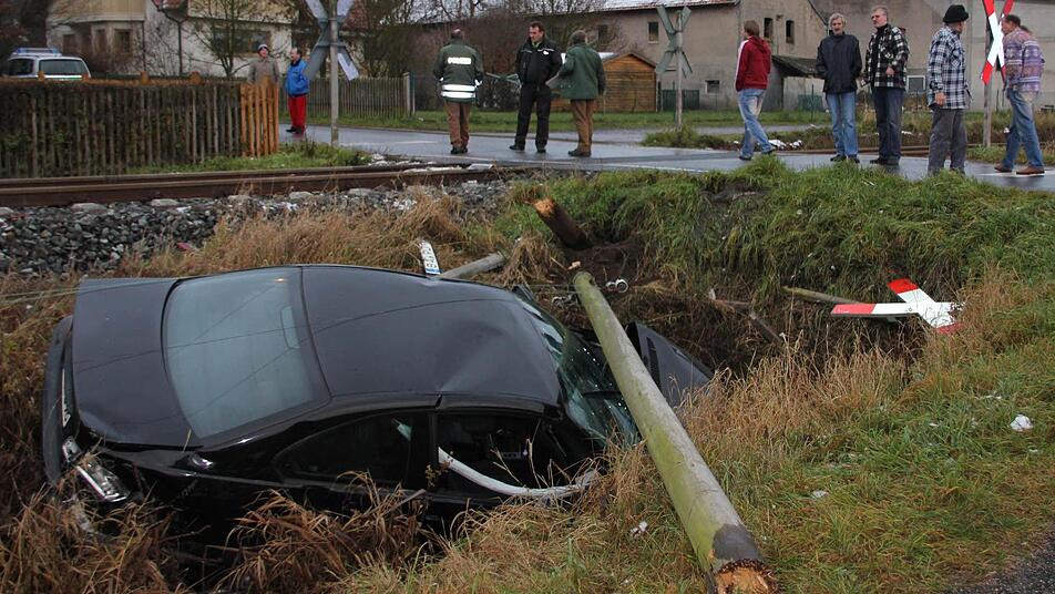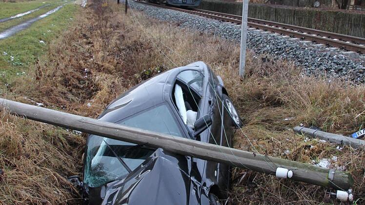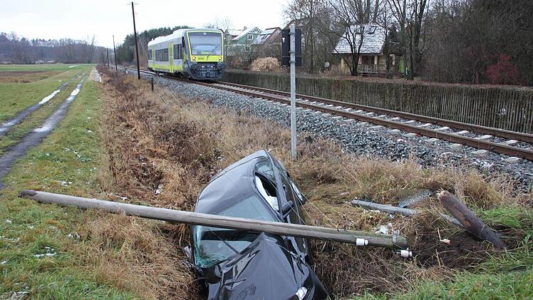 Doch der 42-Jährige, der die gesamte Strecke einsehen konnte, reagierte nicht. So kam es zum Zusammenstoß. Der Zug stieß in die Beifahrerseite und drehte den BMW um 180 Grad, der danach im westlichen Graben neben der Strecke landete, nachdem er zuvor noch einen Holzmast mit diversen Leitungen und und das Andreaskreuz "umgemäht" hatte.