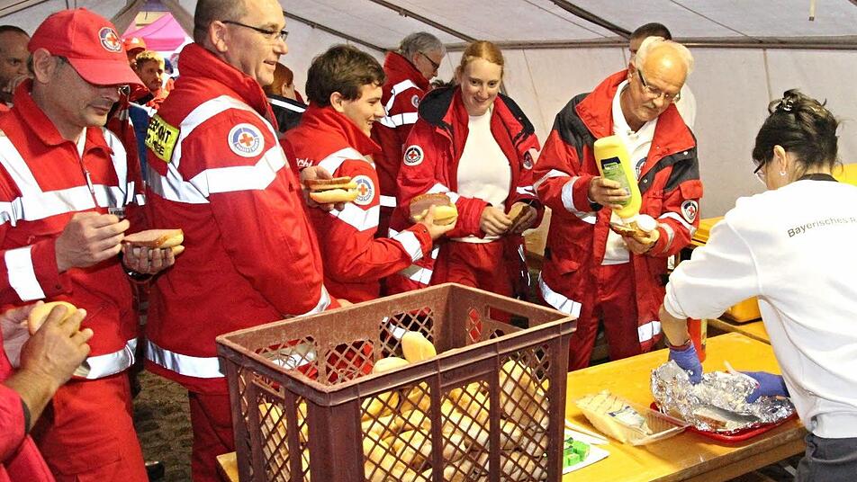 Birgit Schwabe von der Rot-Kreuz-Bereitschaft Memmelsdorf (Gemeinde Untermerzbach) war mit drei weiteren Bereitschaftsmitgliedern vor Ort, um die Verpflegungsgruppe zu unterstützen. "Ich bin schon beeindruckt, was da so alles abläuft, da geht was ab", sagte sie.