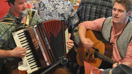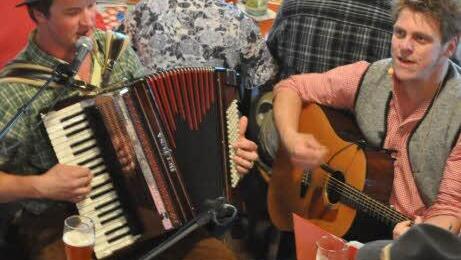 Schon mehrfach überzeugt Franky spielt Akkordeon und singt , der "Maddin"" (Martin Reinhard aus Großwenkheim, Gitarre, Trompete), und der "Chopper" (Joachim Bühner aus Sandberg, Bass, Bariton) sind super aufeinander eingespielt. Und so gingen die Leute ab der ersten Minute mit. "Spilk" sind schließlich keine Unbekannten im Dorf, sie spielten schon vor zwei Jahren im Gasthaus Rädlein, als der Bayerische Rundfunk mit "Musik und Xang" unterwegs war, oder unterhielten heuer beim Landwirtschaftstag im März in Hofheim.