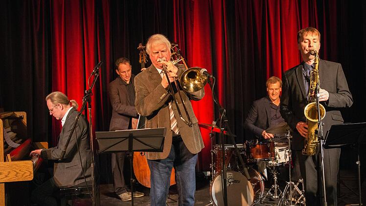 Mit ihm hat alles vor acht Jahren begonnen und seitdem beehrt der Posaunist und Sänger Richard Roblee das Kulturamt Haßfurt live in der Reihe "Jazz mal anders" etwa alle zwei Jahre. Bei seinem vierten Konzert unter dem Motto "Richard Roblee swings again" zusammen mit Hubert Winter (Saxophon), Bernhard Pichl (Klavier), Felix Wiegand (Bass) und Paul Höchstädter (Schlagzeug) zeigte er sich in bester Spiellaune und wurde vom Publikum mit viel Beifall und Bravo-Rufen bedacht.