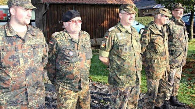 Zuvor, der Morgennebel hatte sich gerade etwas gelichtet, trafen Reservisten verschiedener Kameradschaften aber auch Zivilisten am "Meldekopf"ein, der von Hfw d.R., Berthold Barth besetzt war, um ihre Teilnahme registrieren zu lassen. Hfw d.R. Albrecht Schmidt ließ die Teilnehmer "in "Spießmanier" antreten, um dann an den "Chef", Vorsitzenden Michael Bezdeka, zu übergeben. Dieser gab die Regularien des 8.