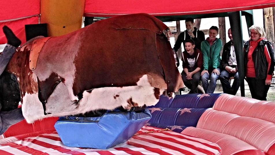 "Bullriding" war eine Attraktion an den Kirchweihtagen in Untermerzbach. Irgendwann musste sich jeder "Cowboy" geschlagen geben.