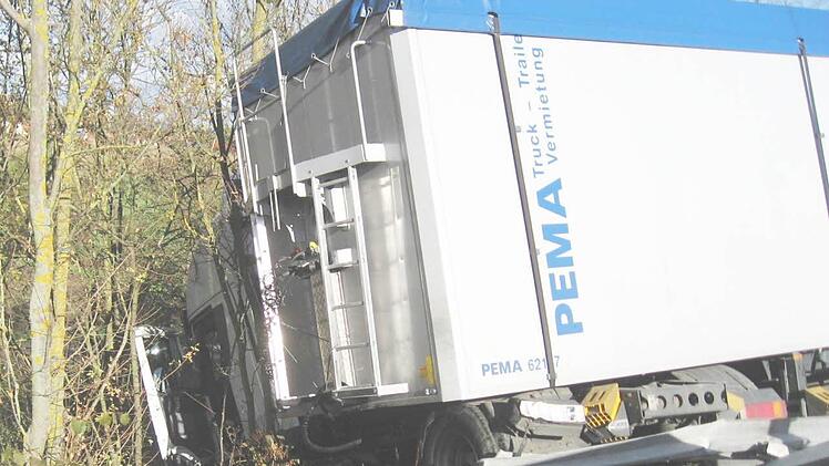 Nach Zeugenaussagen war der Sattelzug gegen 11.30 Uhr in Richtung Schweinfurt unterwegs. Kurz vor der Anschlussstelle Haßfurt/Theres prallte das Fahrzeug dann zunächst gegen die Mittelleitplanke, prallte von dort zurück und kam nach etwa 100 Metern nach rechts von der Fahrbahn ab, wobei die Außenschutzplanke niedergewalzt wurde. Die Zugmaschine landete schließlich an der Böschung, während der Auflieger vom Standstreifen bis in die Böschung ragt.