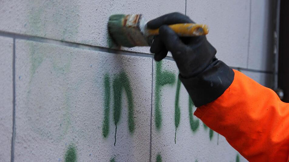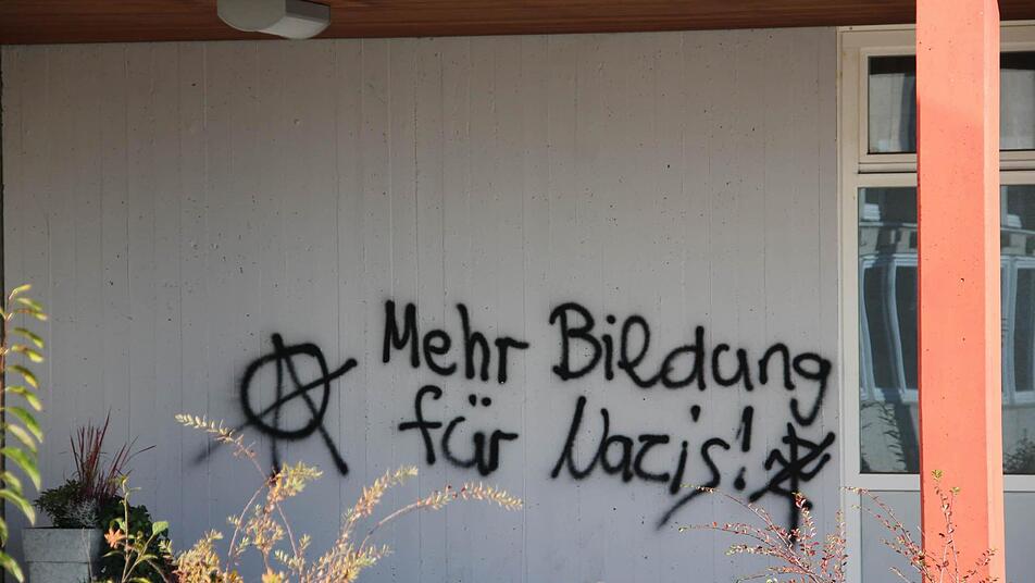 Aber auch zwei private Wohnhäuser blieben nicht verschont: In der Centstraße - gegenüber der Nordseite der Ritterkapelle - fanden die Beamten einen schwarzen Schriftzug. An einer Hausfassade in der Nachbarschaft tobte sich der Unbekannte ebenfalls aus.