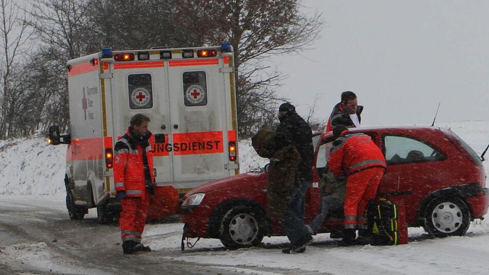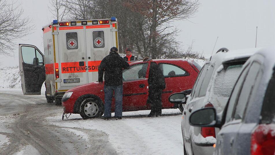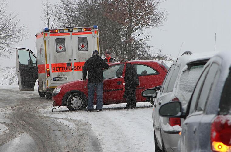 Ein erster Unfall auf schneebedeckter Fahrbahn ereignete sich gegen 12.15 Uhr auf der Staatsstraße 2274 an einer Gefällstrecke zwischen Kirchlauter und Breitbrunn, wo eine 27-jährige Autofahrerin mit ihrem Opel Corsa in einer Kurve ins Schleudern kam. Der wagen kam von der Fahrbahn ab. Die Frau klagte über Schmerzen durch einige Prellungen und musste ins Krankenhaus. Ebern gebracht werden. Ihr Fahrzeug (1500 Euro Schaden) wurde vom Abschleppdienst geborgen und wegtransportiert.