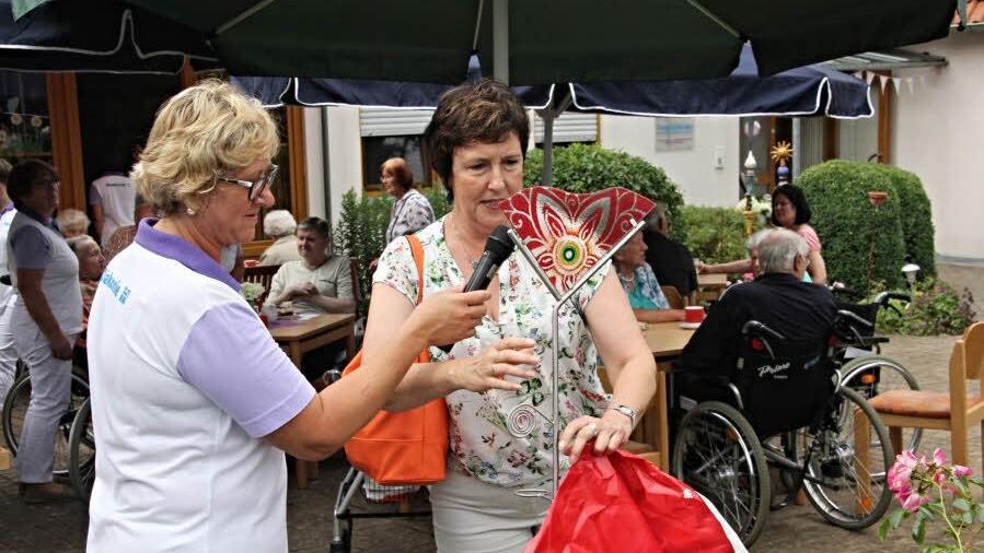 Umso erfreulicher sei die Tatsache, dass der Diakonieverein Maroldsweisach in Zusammenarbeit mit dem Diakonischen Werk Haßberge darauf reagieren konnte und den Anbau am Therese-Stählin-Haus verwirklicht habe. Die Einweihung sei zweimal Grund zur Freude: Zum einen könne man mehr Menschen aufnehmen und zum anderen werde das Therese-Stählin-Haus finanziell besser dastehen, als bisher. Ihre Freude über den Anbau brachte Heimleiterin Christine Deiniger zum Ausdruck und überreichte Pflegdienstleiterin Erika Jünger ein Geschenk.
