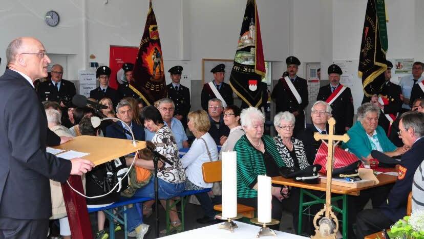 Viele Feuerwehren aus dem Haßbergkreis waren gekommen, um an der Feier teilzunehmen, dazu die Bürgermeister Jürgen Hennemann (SPD, Ebern), Helmut Dietz (SPD, Untermerzbach) und Günther Pfeiffer (FW, Ermershausen), mit dabei der Sachbearbeiter für Katastrophenschutz am Landratsamt, Franz Lindner, und die Feuerwehrdienstaufsicht.