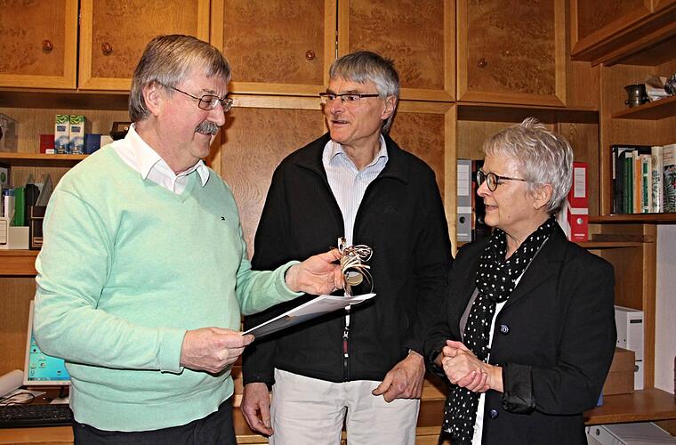 Herbert Stang bedankte sich für die überraschende Ehrung und kündigte an, dass er im kommenden Jahr mit seiner Tätigkeit als Referent im Ubiz aussetzen werde. Danach aber, so versicherte er, werde er sicher wieder weitermachen. Darüber freuten sich Bettina Stroh und Bernhard Schurig und überreichten an Stang ein Präsent, eine Urkunde und eine Anstecknadel.